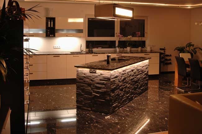 Kaum ein anderer Werkstoff schafft es hervorragende technische Eigenschaften mit natürlicher Schönheit so zu verbinden. Prädestiniert sind hier alle Hartgesteine aber auch Kalksteine sind möglich, wenn man mit den Veränderungen leben kann (rustikale Küche). Küchenarbeitsplatten bieten wir fast ausschließlich im Komplettpaket Aufmaß, Fertigung und Montage individuell nach Ihren Wüschen an.